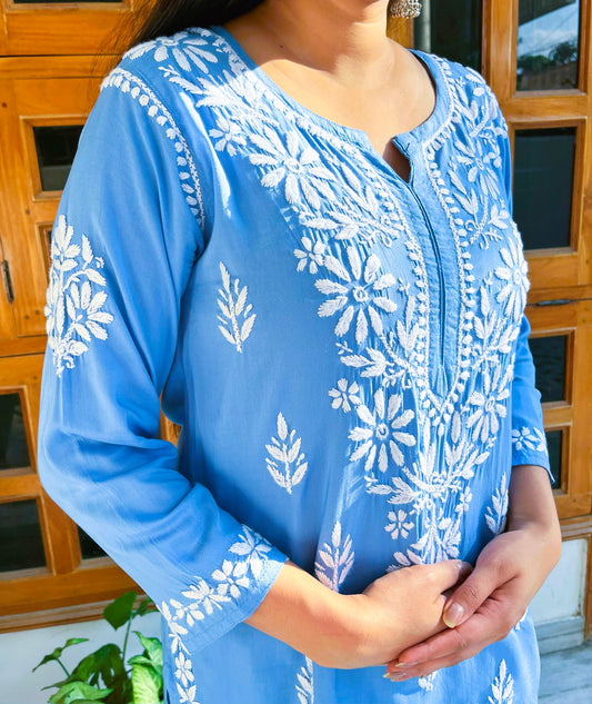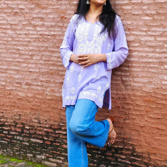 Short Modal TAHIRA Lavender Chikankari Kurti (Short Top)