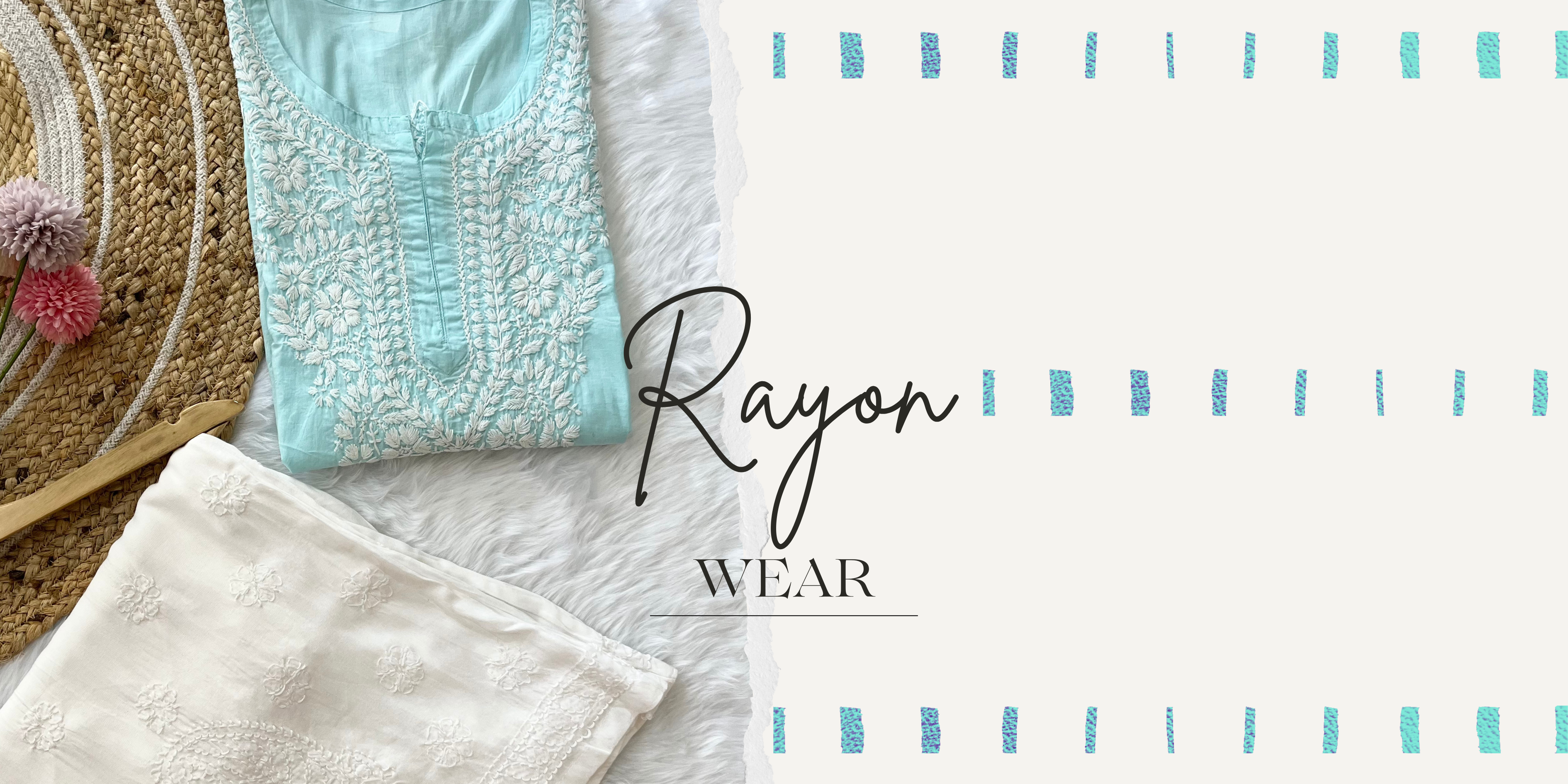SANJH Long Rayon Chikankari Kurta (Long Top)